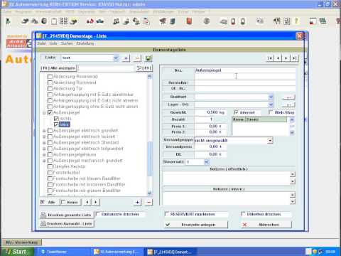 Fz.- Teile-Erfassung Demontageliste